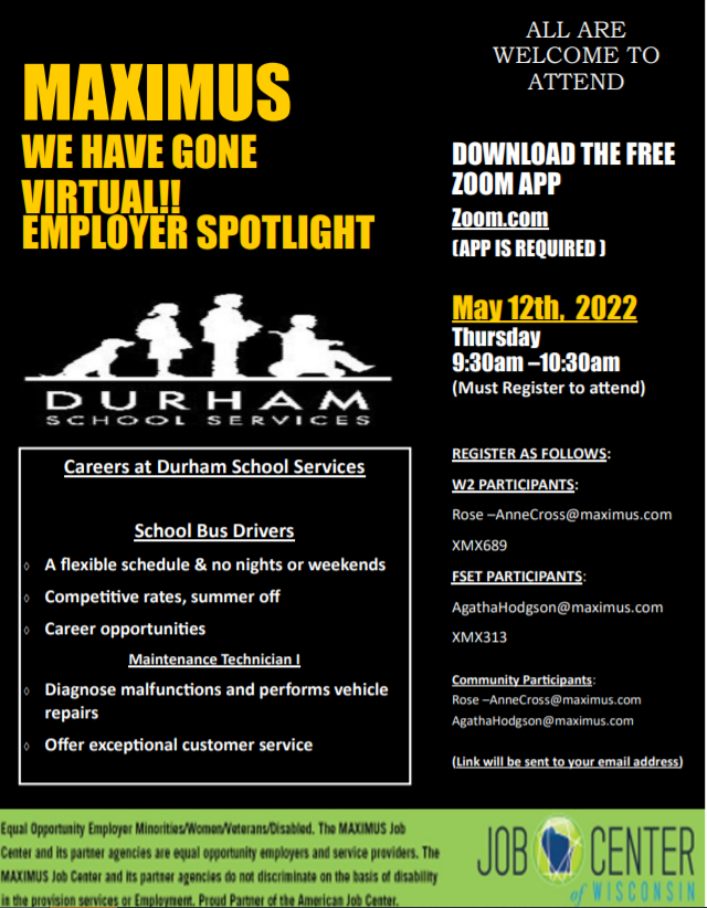 Durham School Service will be our spotlight guest for this week’s virtual job fair.